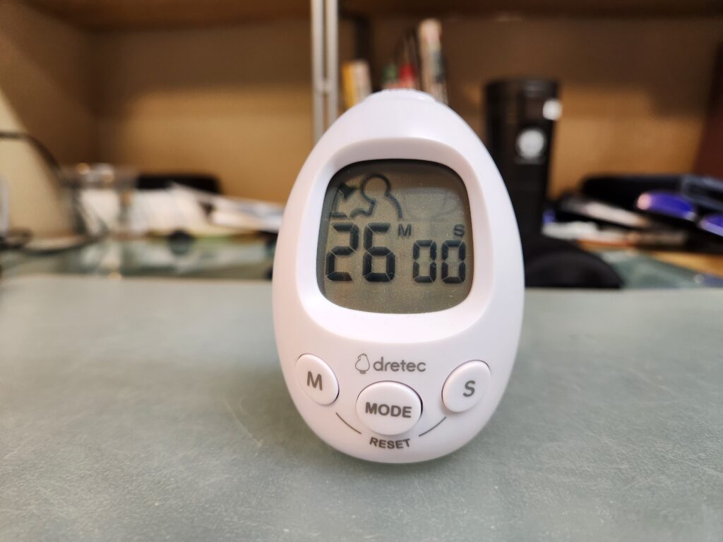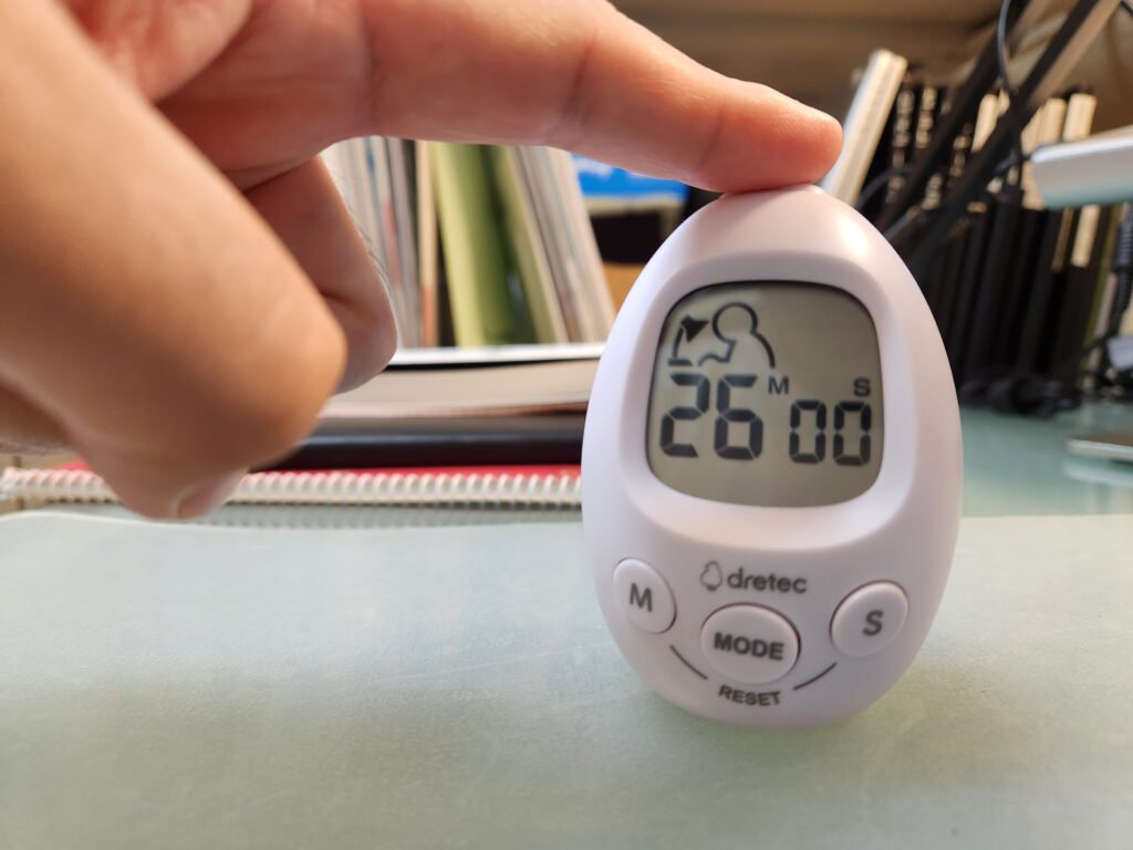 今使ってるのは、ドリテックの「スタディエッグ」っていうインターバルタイマーや
